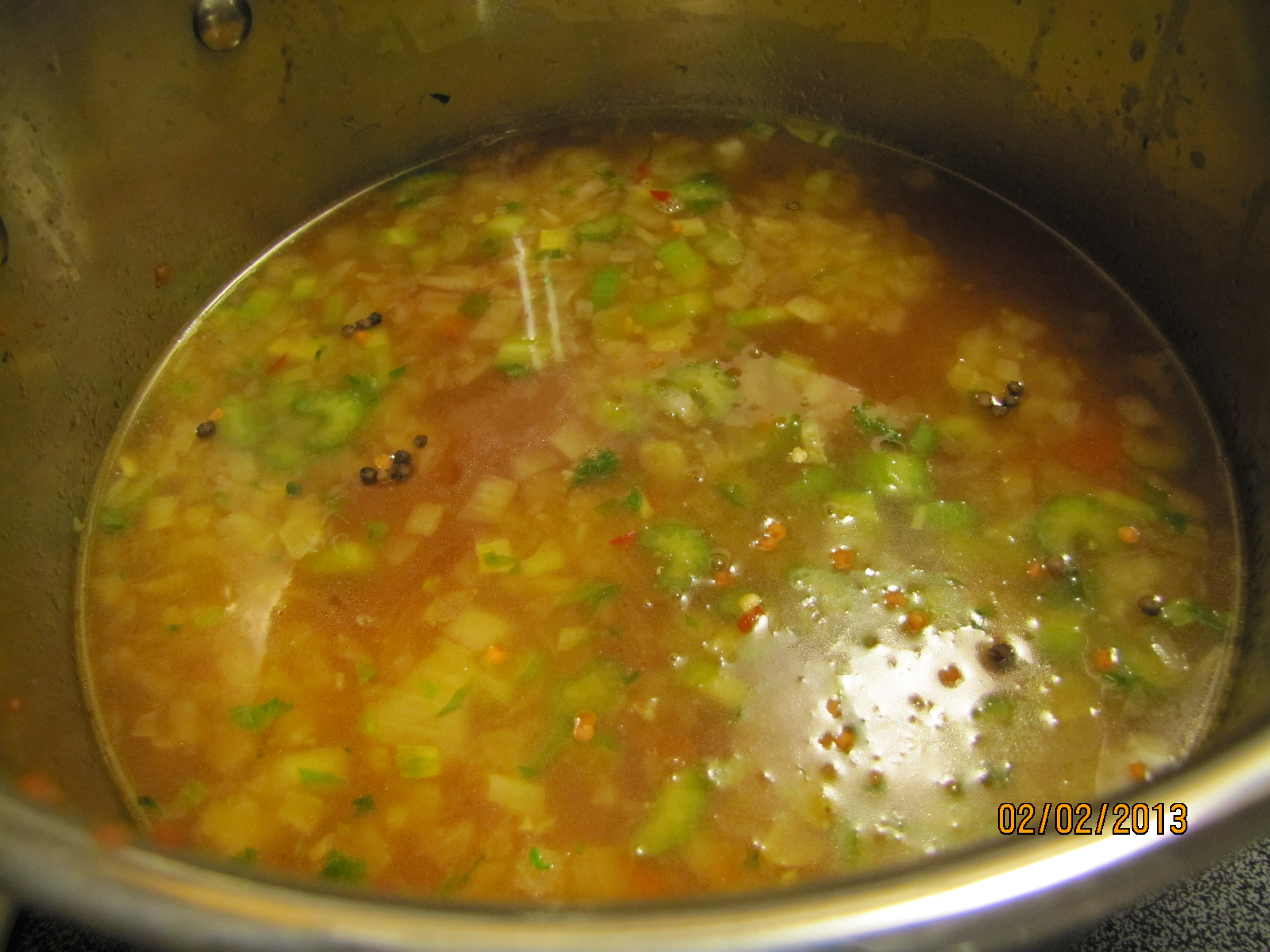 Warm olive oil in stock pot, add onion and garlic heat on low for 5 minutes until onions begin to soften.