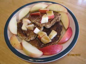 My daughter loves pancakes.  I give them to her as a special weekend treat and try to make them as nourishing as possible.  Here’s the recipe she loves the best.  Last time I made these my awesome cooking buddy Joan suggested I should include them in our breakfast section of our blog.  Here we go.