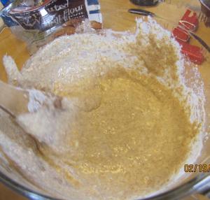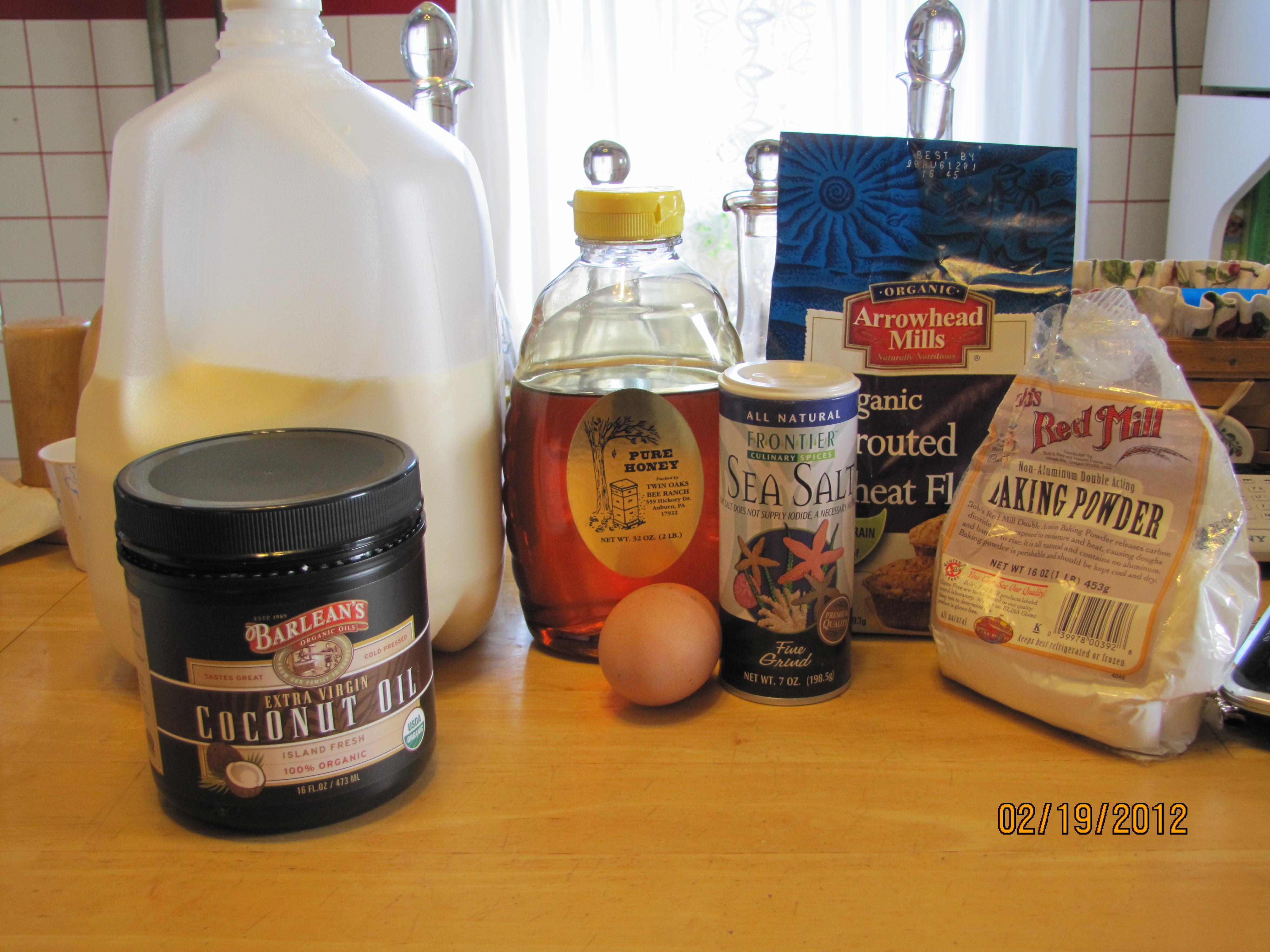 1.  Mix ingredients together until somewhat smooth.  If batter seems too thick add just a touch of additional milk.  Note the batter will not be very runny because you are using sprouted flour.