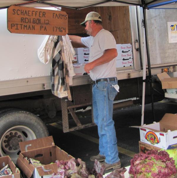 Mike from Little Peace Farm, Schuylkill Haven assisting customers.